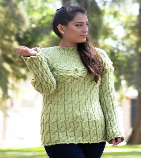 The term “sweater” is a catch-all for a variety of knit garments. Although the term often refers to a pullover, it can also refer to a cardigan, a garment that opens and fastens down the front. Within either group, there is a great variety of design. Various necklines are found, although the V-neck, turtleneck and the crew neck are the most popular. The hemline is typically at hip height or slightly longer, just overlapping the waist of one’s pants or skirt, but can vary significantly. It can range from just below the bust in women’s garments to mid-thigh in either sex, or even longer in a knitted variation of the poncho shirtdress. The sleeve length is also variable, ranging from full-length or three-quarters to short-sleeved, cap sleeves or sleeveless. The front seam or opening of a cardigan allows for further different styles, such as a surplice or a bolero jacket. All hems may have various types of borders, such as picots, ribbing and frills.